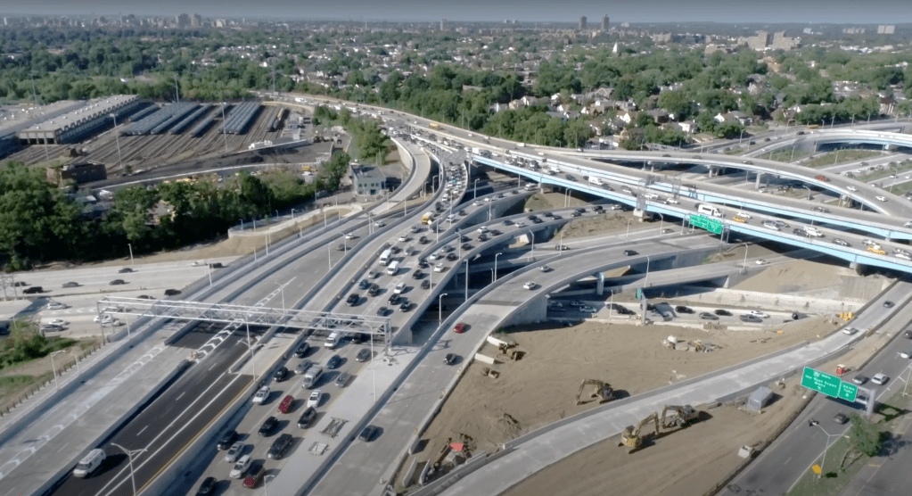 The improvements eliminated stop conditions from on-ramps, mitigated weaving conditions between adjacent roadways, and improved vertical clearance and stopping sight distance. There were six total bridge replacements, a new ITS system, traffic signals, highway lighting and signage, and a shared use bike/pedestrian path to eliminate crossing at ramps.