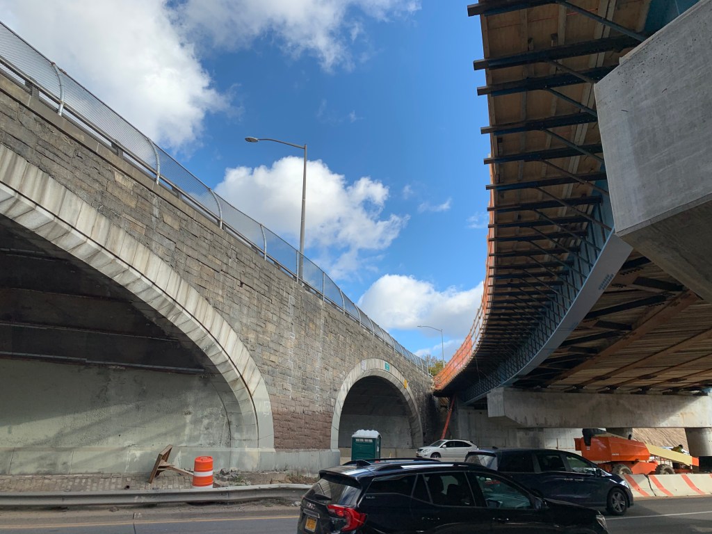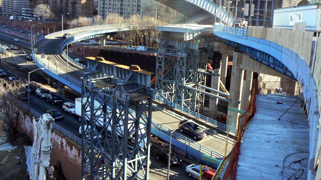 The project necessitated complex work zone traffic control including some detours affecting the George Washington Bridge, the Harlem River Drive, the Major Deegan Expressway, and the Boroughs of Manhattan and the Bronx. The contract included four temporary ramps, made up of eight temporary bridge structures and Geogrid reinforced earth systems, to carry traffic while the ramps were being rehabilitated. Construction experience gained on this project included long span bridge; structural steel erection; drilled shafts; footings; reinforcing steel; and concrete work. Construction cost: $420 million.